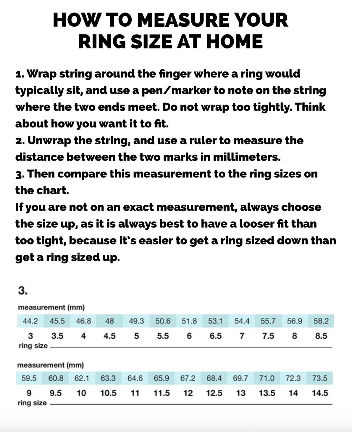 If you do not know your ring size, the last photo includes a measurement guide or you can download a ring sizing app