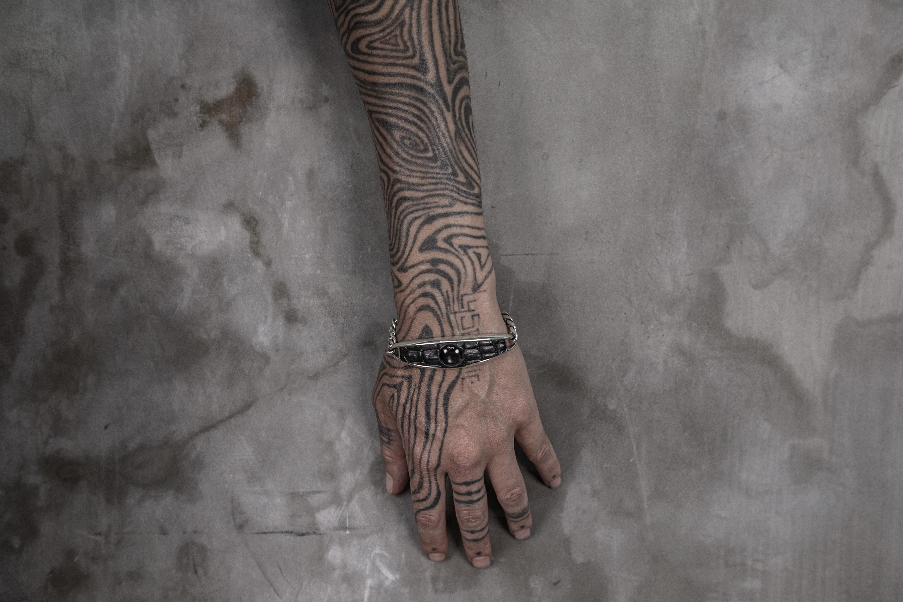 Completed with an adjustable silver chain, the bracelet is designed for comfort and versatility, pairing effortlessly with both everyday wear and elevated styling. Each piece is made to order and crafted with precision, ensuring no two are exactly alike. Designed for modern, industrial styling.
