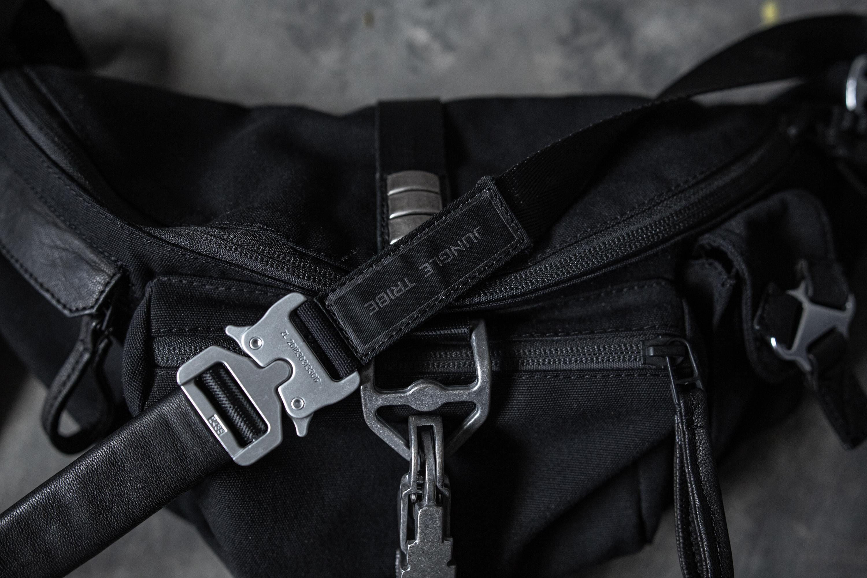 I’m Dustin — one of the Jungle Tribe designers — and I’ve personally worn this bag all summer long. From DJ sets to airports, it’s been my go-to. I love how lightweight it feels when worn on the shoulders, how the webbing strap sits soft against the skin, and how easily it transitions between travel and performance. My headphones fit perfectly inside for gigs, and when I’m traveling, there’s room for a passport and a water bottle in the main compartment. After months of constant wear, I can say this piece performs as good as it looks.