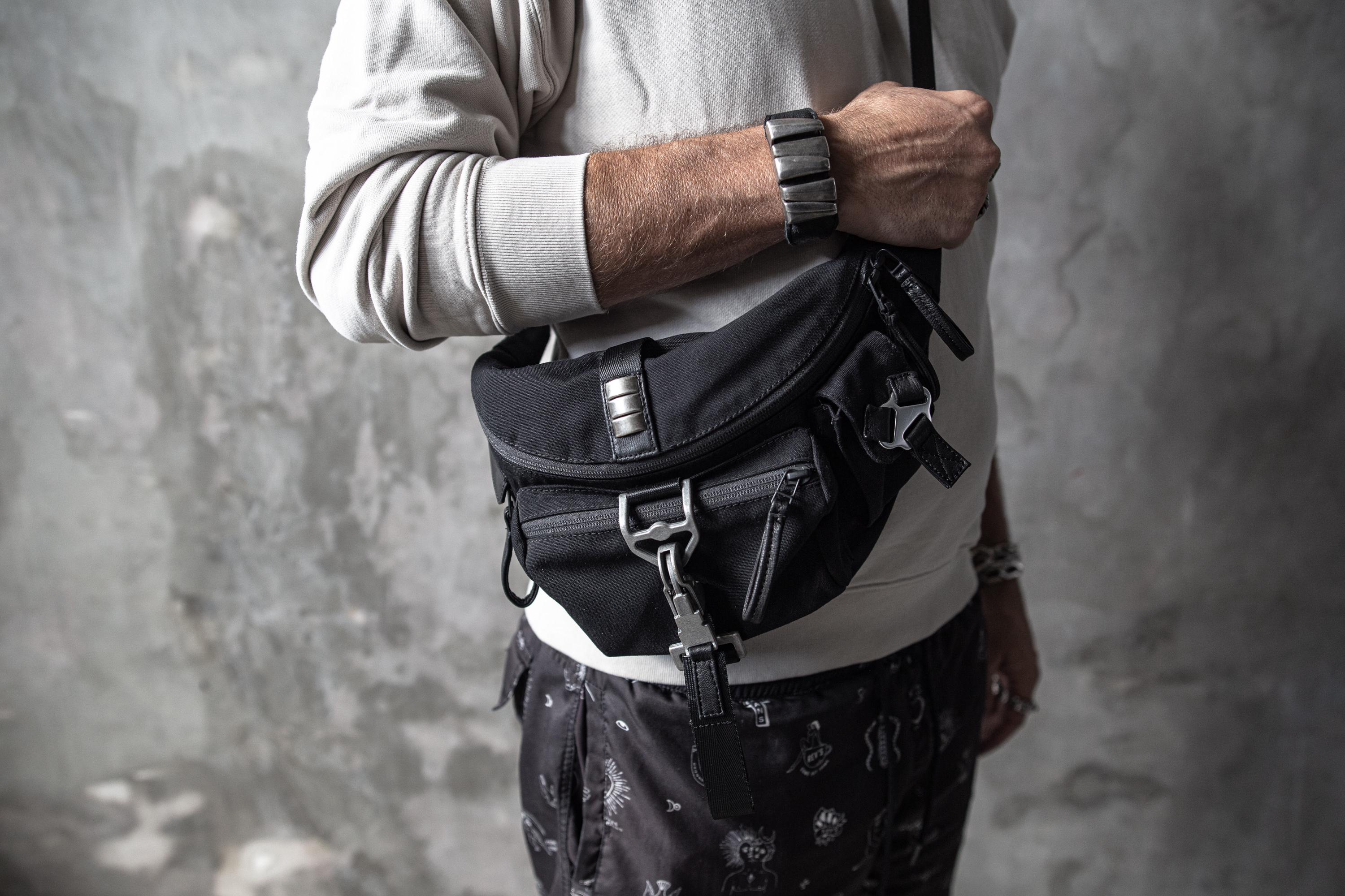 Forged in minimalism and built for movement, the Shadowlock Fanny Pack is a sleek fusion of function and edge. Crafted from premium soft-weight black canvas and leather accents, its structured silhouette and brushed silver hardware create a clean, industrial aesthetic — refined yet ready for the streets, the stage, or the shadows in between. Whether worn across the waist, chest, or shoulder, it’s the ultimate lightweight crossbody for DJs, travelers, and urban explorers.