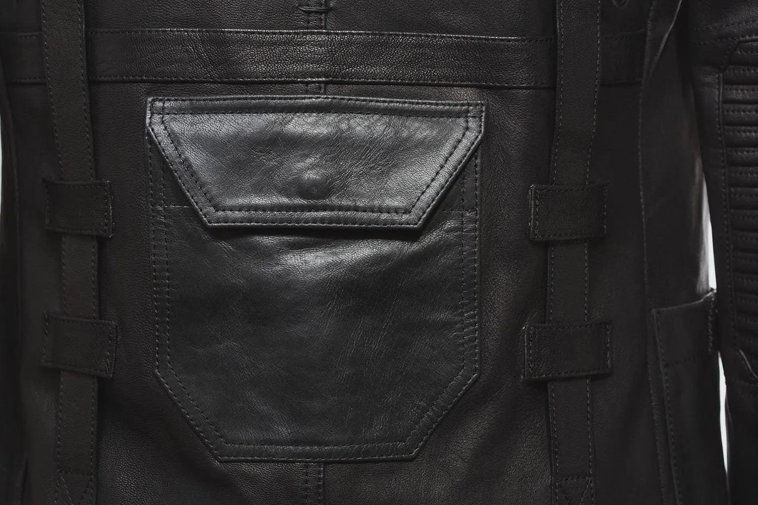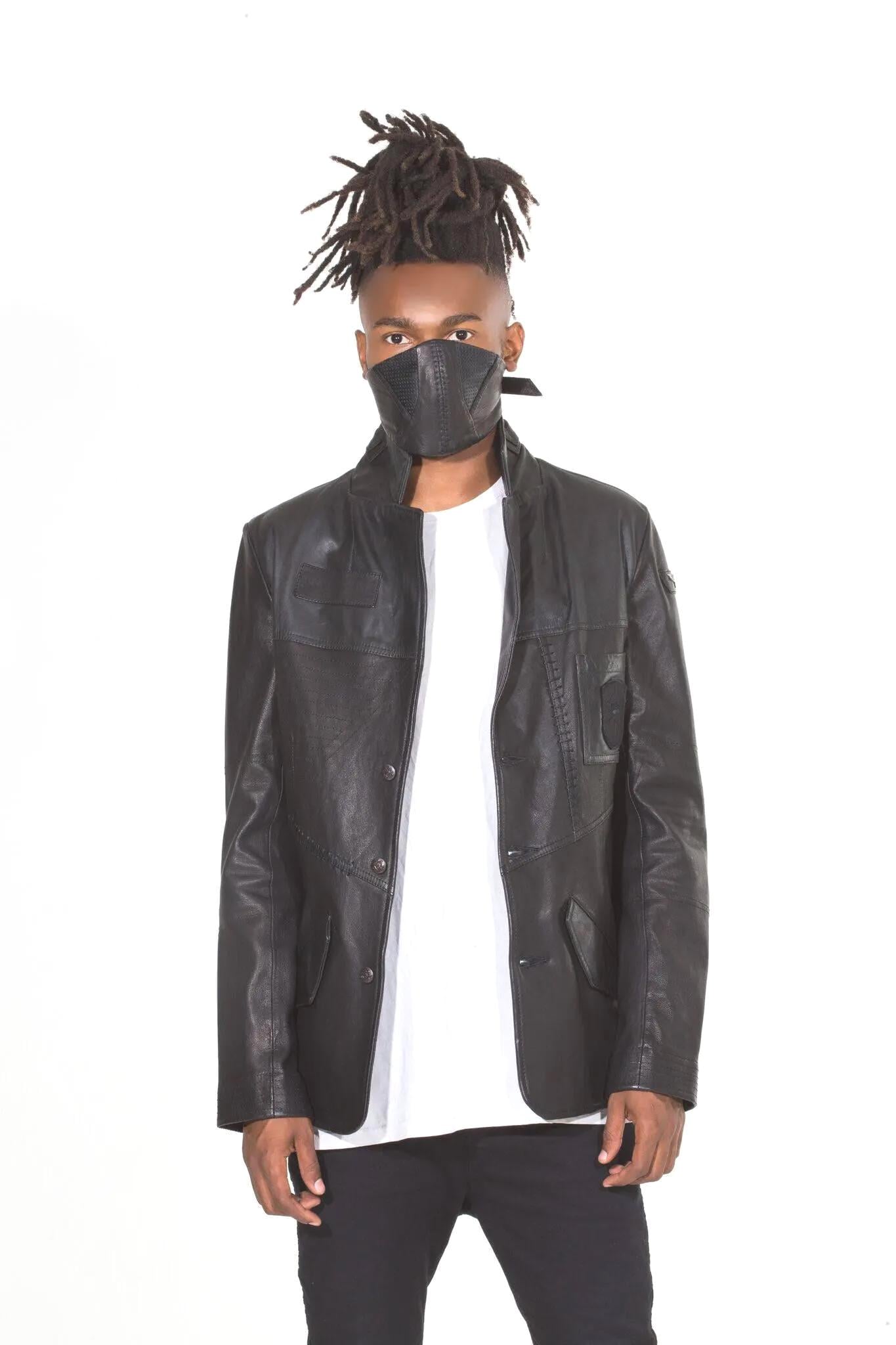 This handmade unisex leather blazer by Dust & Beau is a one-of-a-kind elemental piece — sleek, futuristic, and dripping in black-on-black detailing. Built from full-up black goat leather and finished with layered militaria influences, this blazer blends sharp tailoring with sculpted, dystopian edge. From the cast wing-insignia shoulder medal to the blacked-out patches and strapwork, it’s a refined yet rebellious statement piece designed for alt fashion, high fashion, and everything in between.