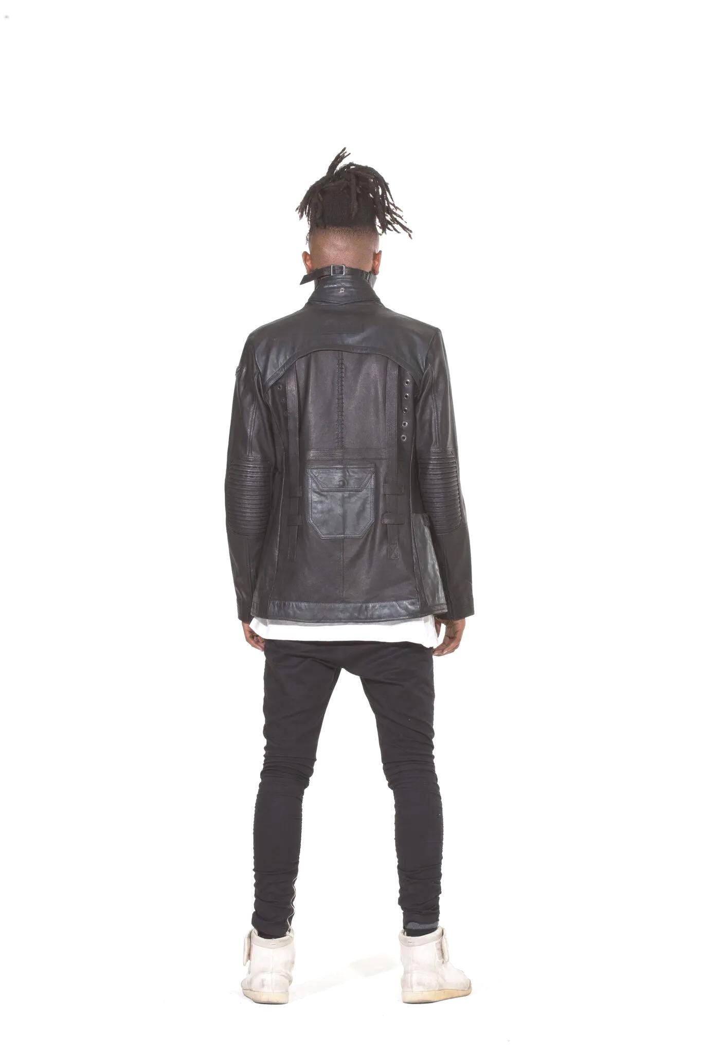 Crafted in our studio from premium goat leather, this blazer features hand-cast metal elements, hand stitching along the front and back seams, and signature accordion-stitched elbows that provide both structure and flexibility. Leather straps and grommets run down the spine, while oxidized black expandable zippers create an adjustable, armored feel in the sleeves. Finished with unique royal military buttons and a soft silk lining, this piece is designed to move seamlessly from formal wear to nightlife fits. Every jacket we make is handmade, unisex in spirit, and completely one of a kind.