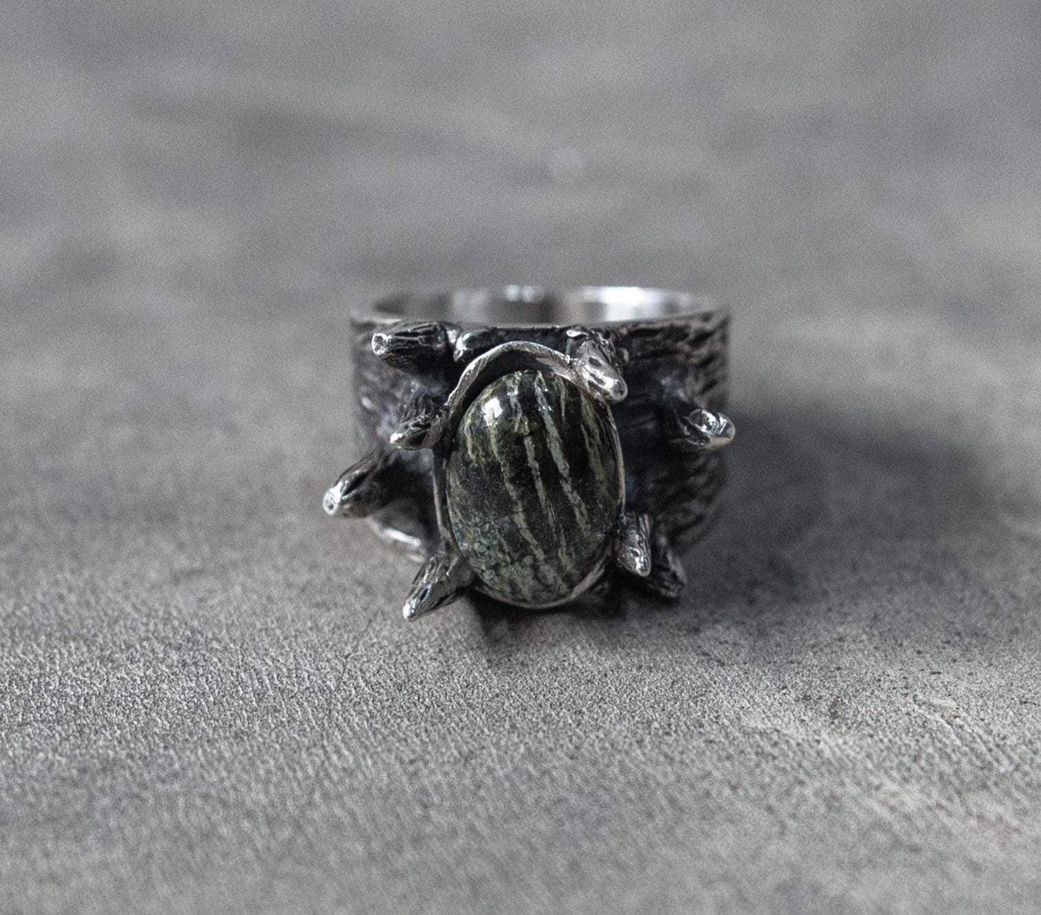 Whether you love boho, rustic, or bold jewelry, this handmade seraphinite ring is a distinctive addition to any collection, symbolizing strength, individuality, and artisan style.
