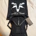 This bag features more subtle details with nylon webbing running down the center stripped with black matte rounded studs. Faux leather application accents the pocket and flap. The minimal studding and accents makes for a stylish and slick bag.
