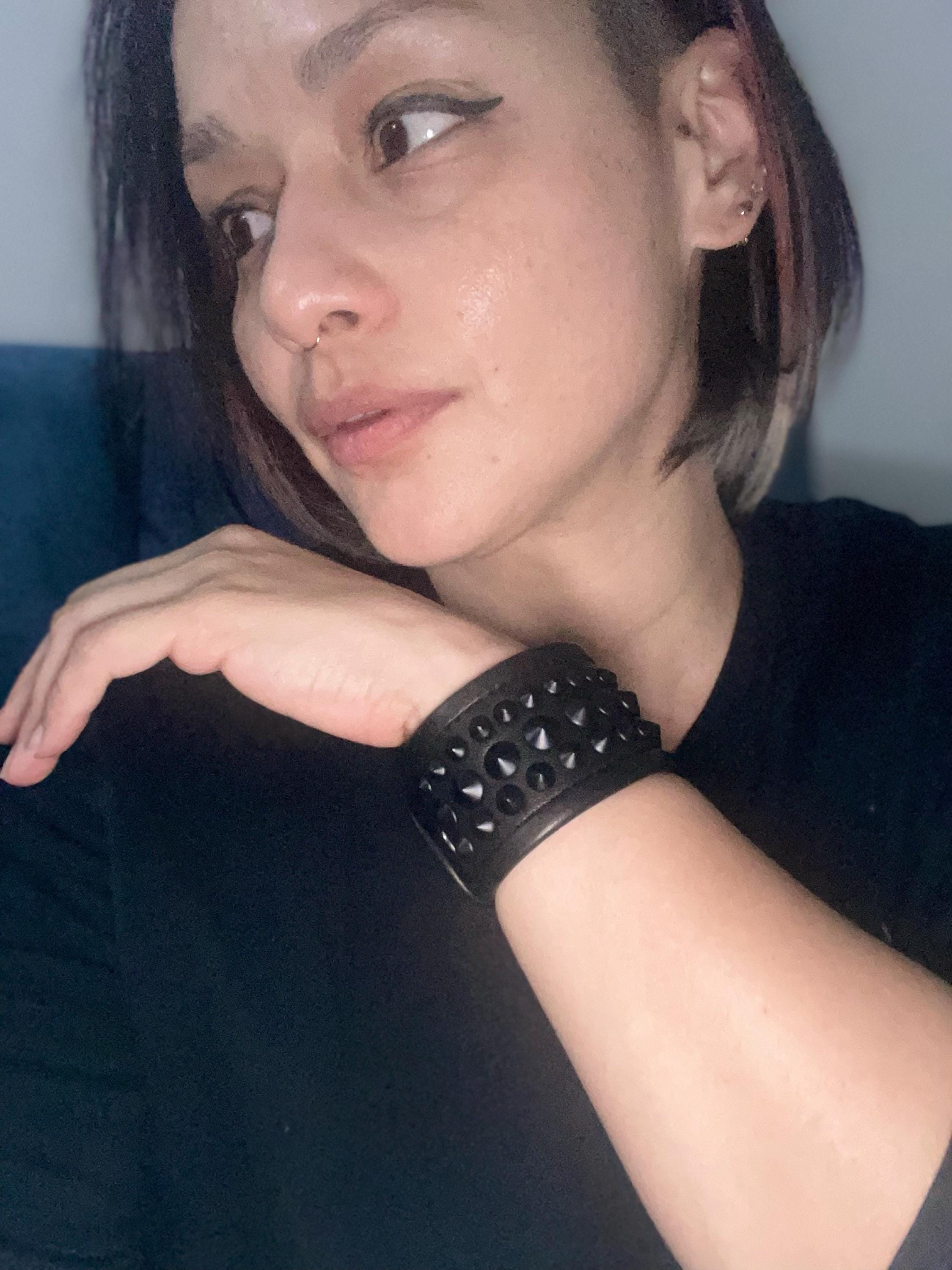 BLACK on BLACK Leather Metal Studded Cuff Punk Bracelet